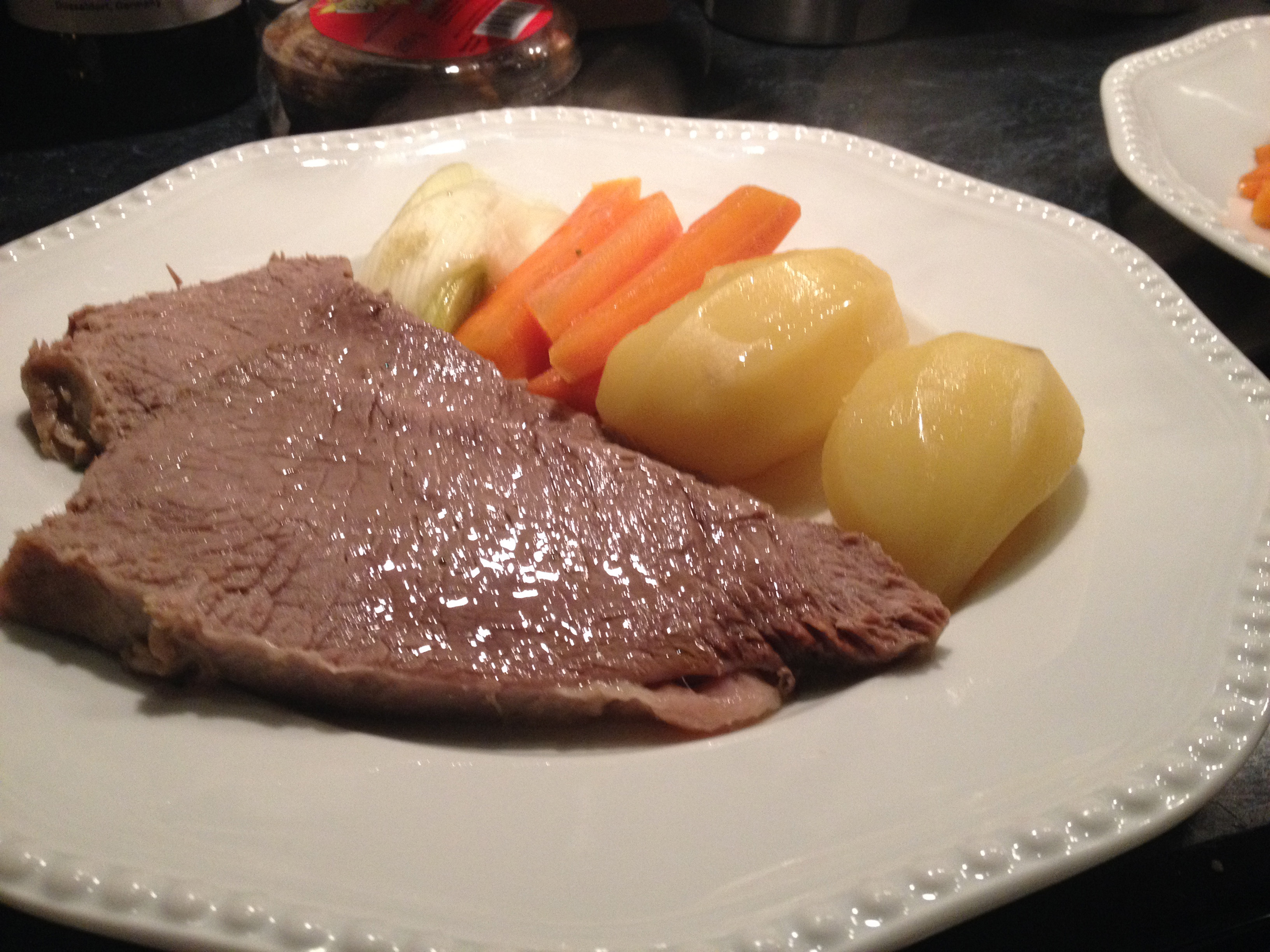 Heute gibt es bei uns Tafelspitz und Meerrettich-Sauce mit Möhren-Lauch-Gemüse.