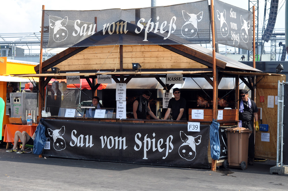 Folgt dem Geruch – der Stand ist auffallend. Sau vom Spieß steht rundherum geschrieben.