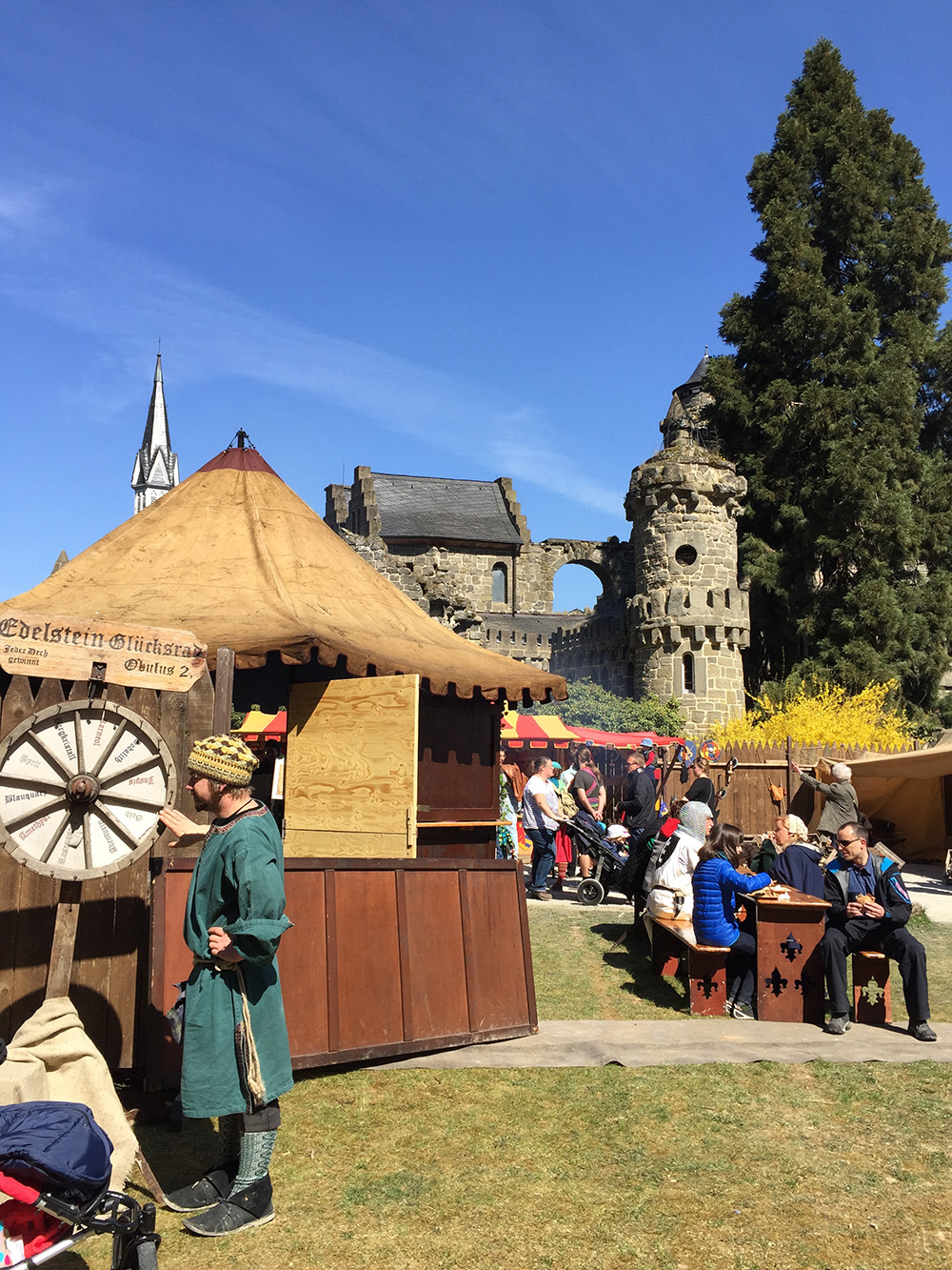 Stand von sau-saugut mit der Löwenburg im Hintergrund