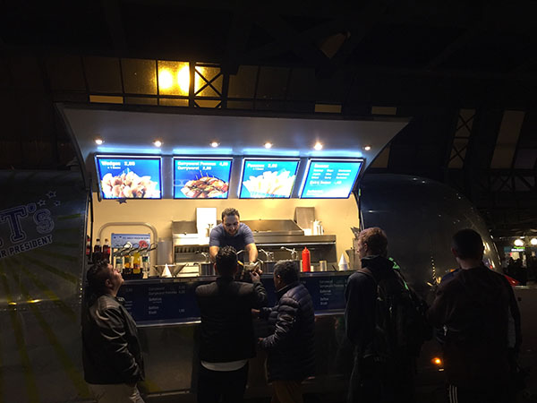 auch am Bahnhof – Hightechwagen zwischen Rucksacktouristen und Reisenden