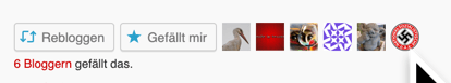 Uns ist nichts anderes übrig geblieben, als die Likes kurzerhand komplett zu entfernen, um uns von diesem widerlich dahingerotzten Hakenkreuz zu befreien. Nieder mit diesem scheiß Gesindel!