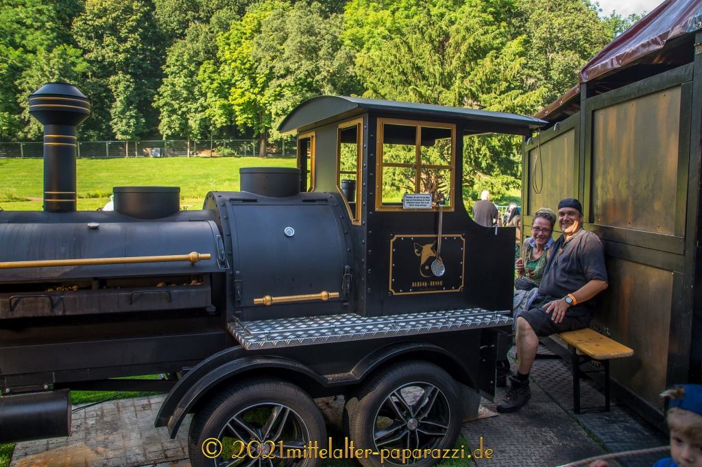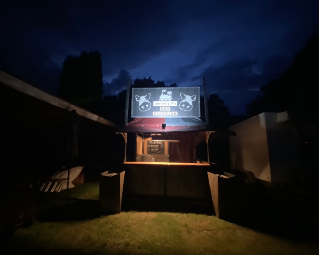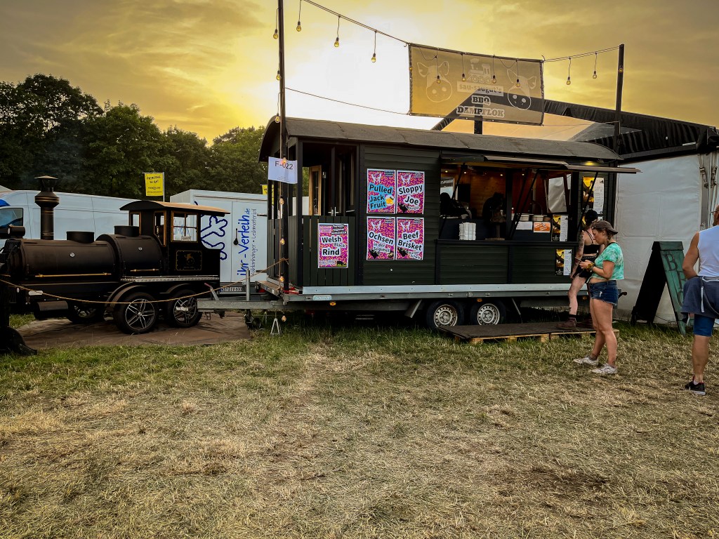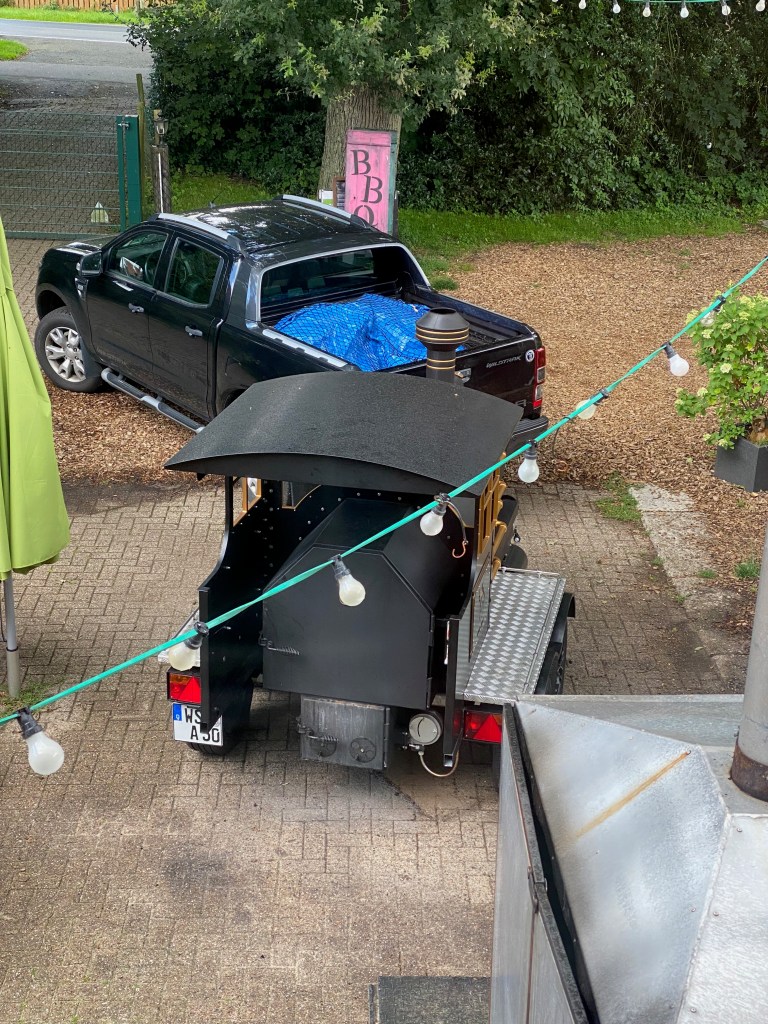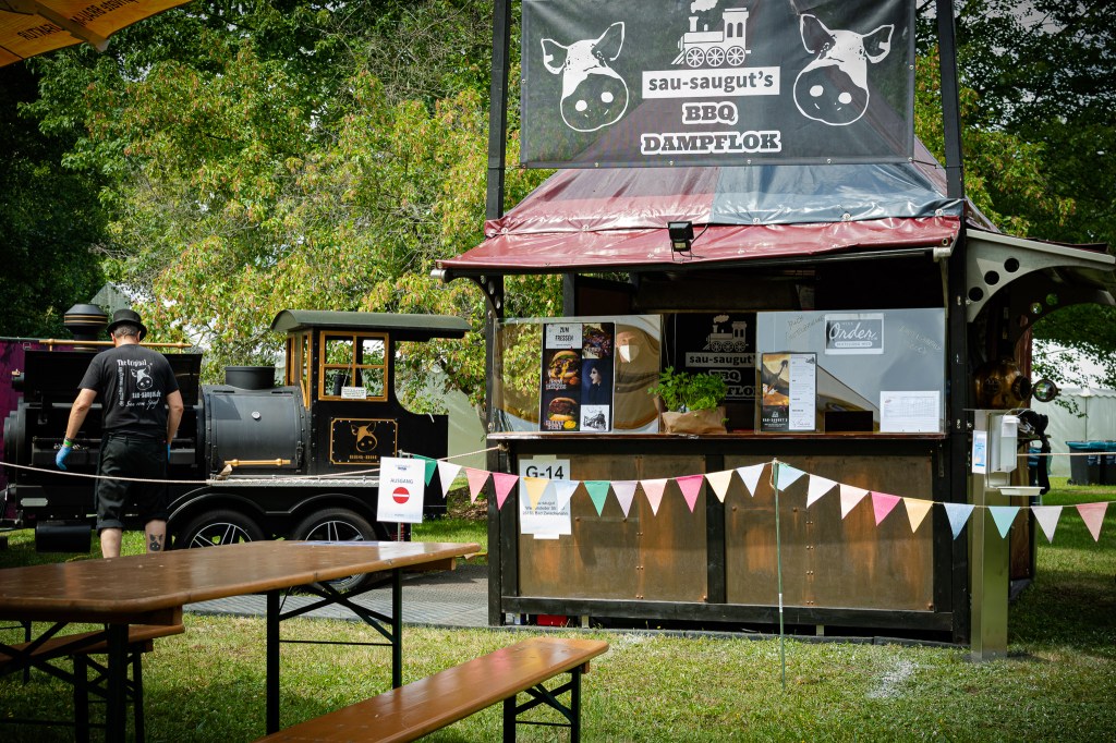 Die zwei Jahre Corona nutzten sie, um sich weiterzuentwickeln, denn Stillstand ist und bleibt keine Option. Neben dem Betreiben des Pop-up BBQ-Hofes investierte die sau-saugut in eine BBQ-Dampflok und später baute das Betreiber-Ehepaar, Angela und Arnt, dazu noch einen passenden Waggon als Verkaufswagen.
