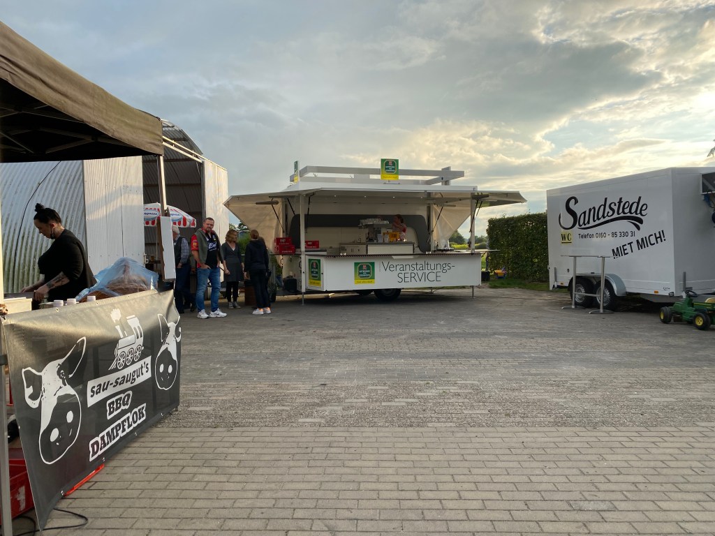 Fest steht, wir hatten Hilfe von allen Seiten. Bis zum Landrat selbst, engagierten sich ganz viele um den Erhalt des BBQ-Hofes. Von einem Gastronom bekamen wir sogar Geschirr und das, obwohl wir unmittelbare Konkurrenten wurden. Und von Christian – er kandidiert gerade zur Wahl in Bad Zwischenahn – kamen ausreichend Sitzgarnituren für den Biergarten und Zeltheizung für’s Bierzelt. Dirk, unser Nachbar half uns mit Radlader, die Holzschnitzel auf dem Gelände zu verteilen. Von seiner Ma bekamen wir Pflanzen, um es behaglich werden zu lassen. Jochen, der seinen Blumenladen in Zetel betreibt, verdanken wir den Blumentischschmuck. Und nicht zu vergessen unsere ganzen Zulieferer… Henning, unser Metzger und gute Seele, der uns mit Rat und Tat zur Seite steht, egal zu welcher Uhrzeit und unsere Bäckerei, die eigens für uns Brioche-Buns und vieles mehr backt. Unser Getränkelieferant von der Weindiele, der uns beratend zur Seite stand… und noch so unendlich viele mehr, die immer für uns da waren, wenn wir sie brauchten. Ja sogar das Gestüt Bruné und die Motorraddiele und wer sonst noch alles, baten ihre Hilfe an, als noch nicht klar war, ob wir hier einen Popup-Imbiss betreiben dürfen. Dieser Zusammenhalt war und ist einfach beispiellos. 💖