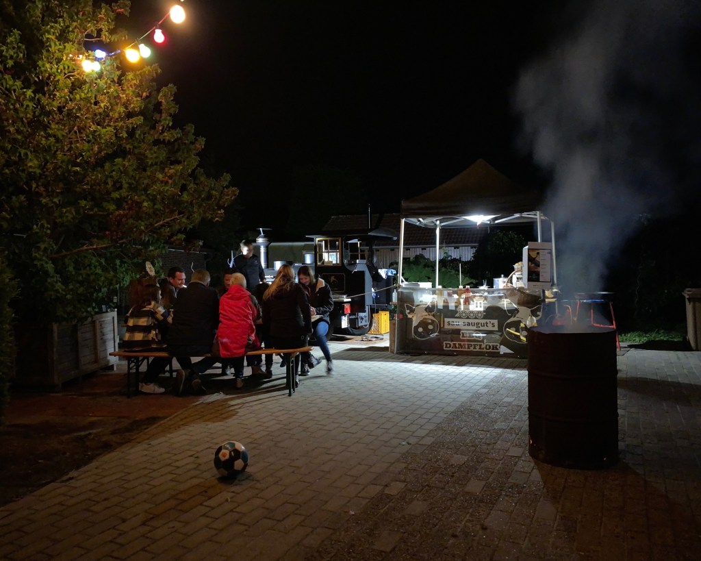 Zuhause angekommen, kurz durchschnaufen und die letzten Sachen packen, denn am Abend fahren wir mit BBQ-Dampflok für ein Catering zu Anne. Sie feiert ihren dreißigsten Geburtstag und 70 geladene Gäste warten auf uns. Anne hat alles wundervoll geplant, sogar ein Toilettenwagen und ein Getränkewagen stehen parat.