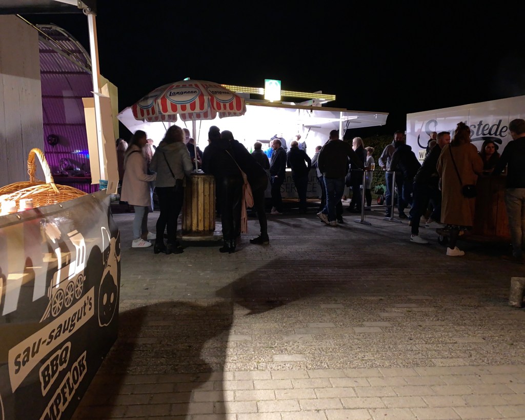 Um 6:30 Uhr am nächsten frühen morgen, kriechen wir gerädert aus dem Bett, die letzten Vorbereitungen erledigen. Um 9:30 Uhr dann Aufbau im Park der Gärten. Arnt fährt nach dem Aufbau zurück nach Hause und ich bleibe mit einem Mitarbeiter gleich vor Ort, denn um 14 Uhr geht es los mit „Genuss im Nordwesten“ – und der Andrang ist von der ersten Minute an groß. Um 16 Uhr werde ich von einer Mitarbeiterin abgelöst.