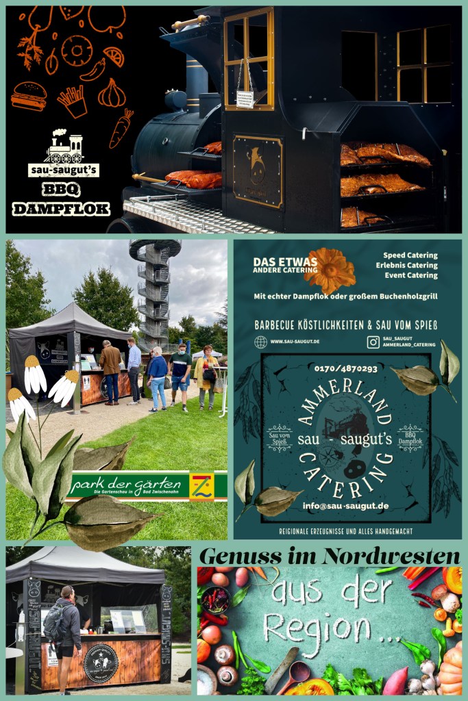 Am nächsten morgen fahren wir mit BBQ-Dampflok 🚂 um 8 Uhr zum Park der Gärten, um sie an unseren Stand zu stellen. Am Sonntag stehen wir selbst vor Ort und bieten Vollprogramm an. Über Müdigkeit denken wir nicht nach… Wir werden von den Gästen schier überrannt. Mit vier Leuten powern wir bis 17 Uhr durch, dann sind wir ausverkauft.
