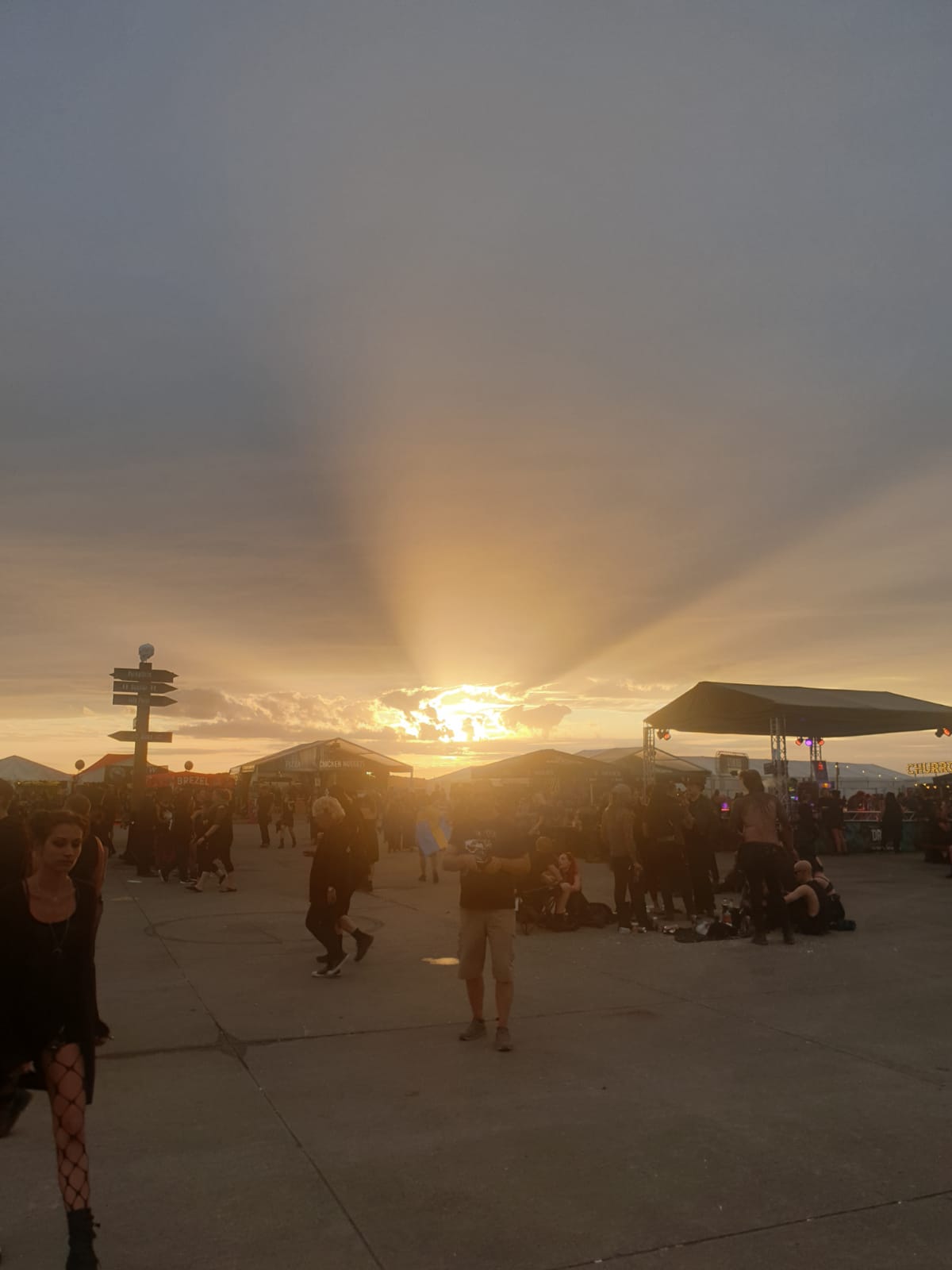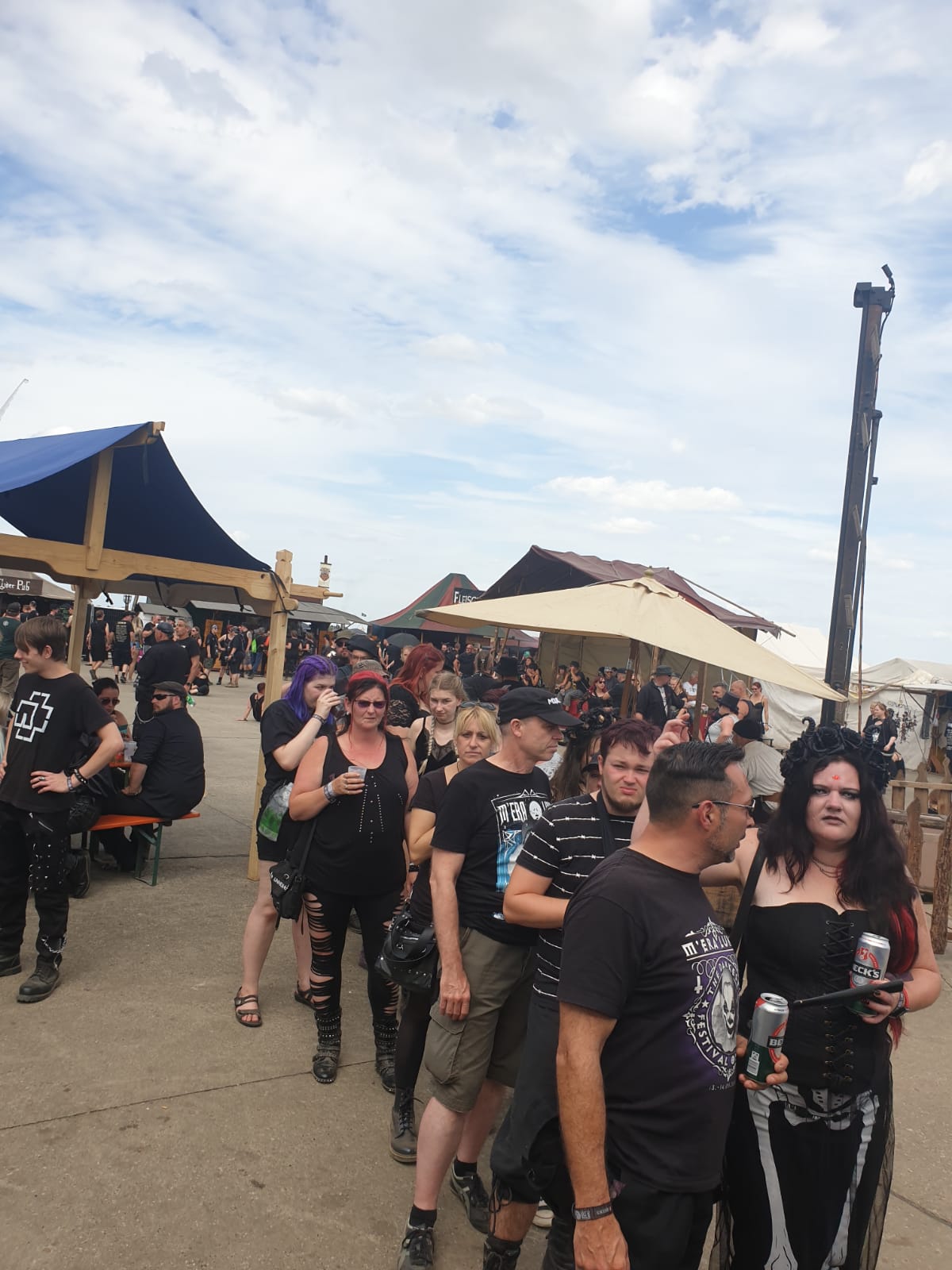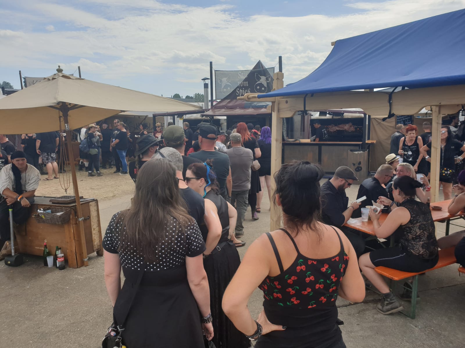 Übrigens, die Besucher, allesamt Freaks und Metaller, das sind durchweg höfliche, nette und lustige Menschen. In der ganzen Zeit gibt es keinerlei böse Worte, keinen Streit oder gar Krawalle. Allesamt sind tiefenentspannt und die friedvolle Atmosphäre ist einfach nur angenehm, man kann es nicht anders beschreiben.