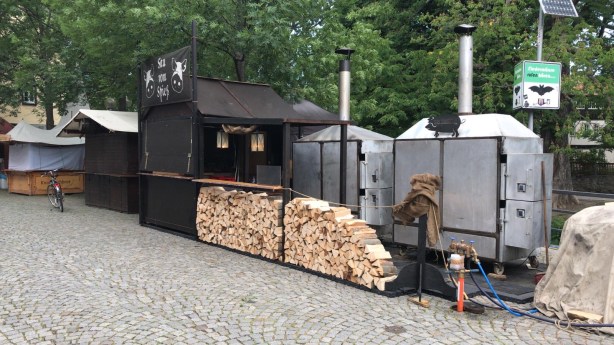 Reinhard Preuß hat uns sogar ein Bild per E-Mail zukommen lassen. DANKESCHÖN! Er schaffte es tatsächlich, alle vier Schweine, die sich munter über dem Feuer drehten, zu fotografieren.