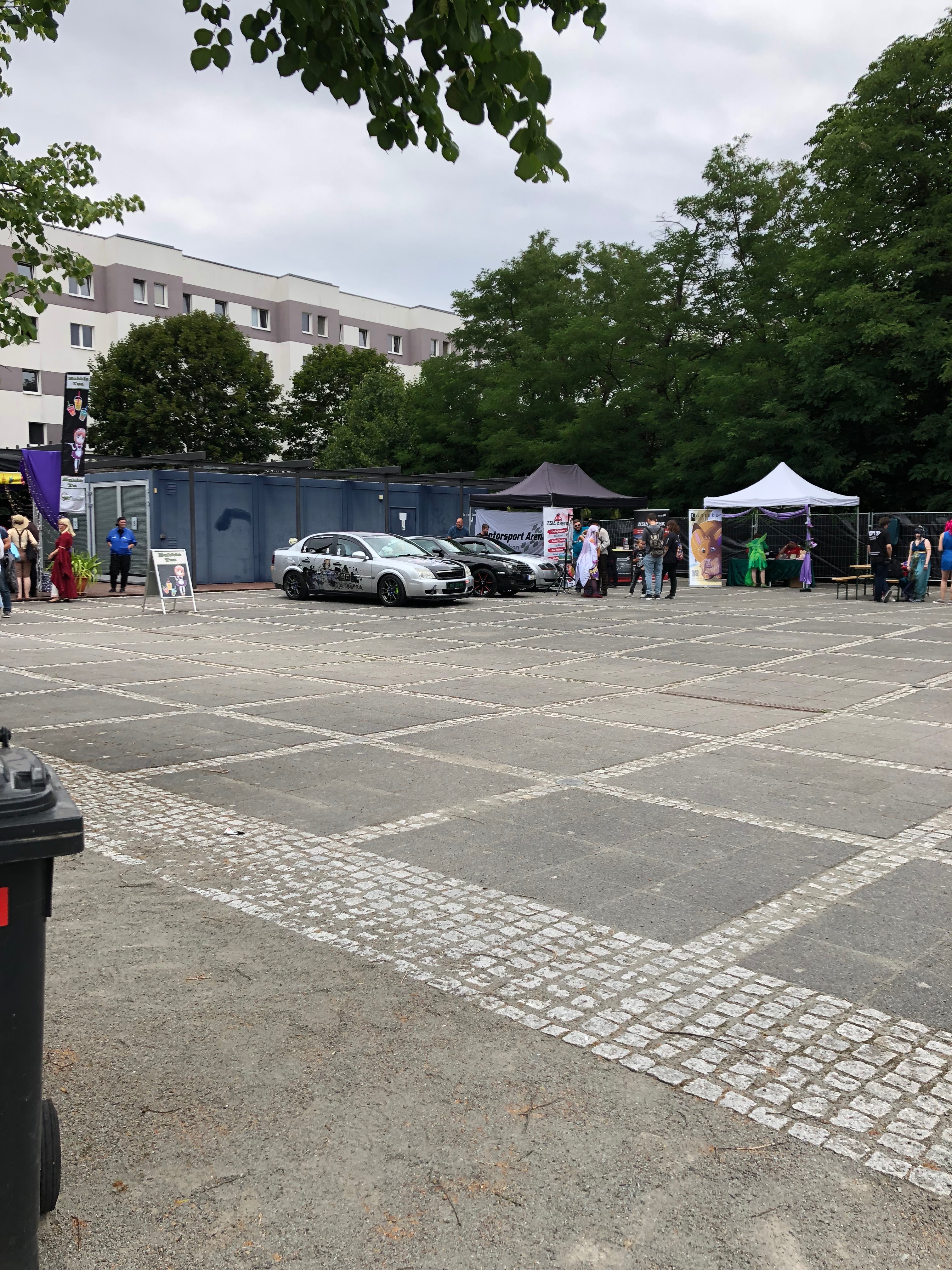 Die Veranstaltungsflächen sind teilweise grauenvoll. Sogar auf einem Handballplatz werden Stände platziert. Auf einem anderen verwaisten Teil stehen Autos herum, die nun überhaupt nichts mit Fantasia zu tun haben und gar nicht ins Bild passen.