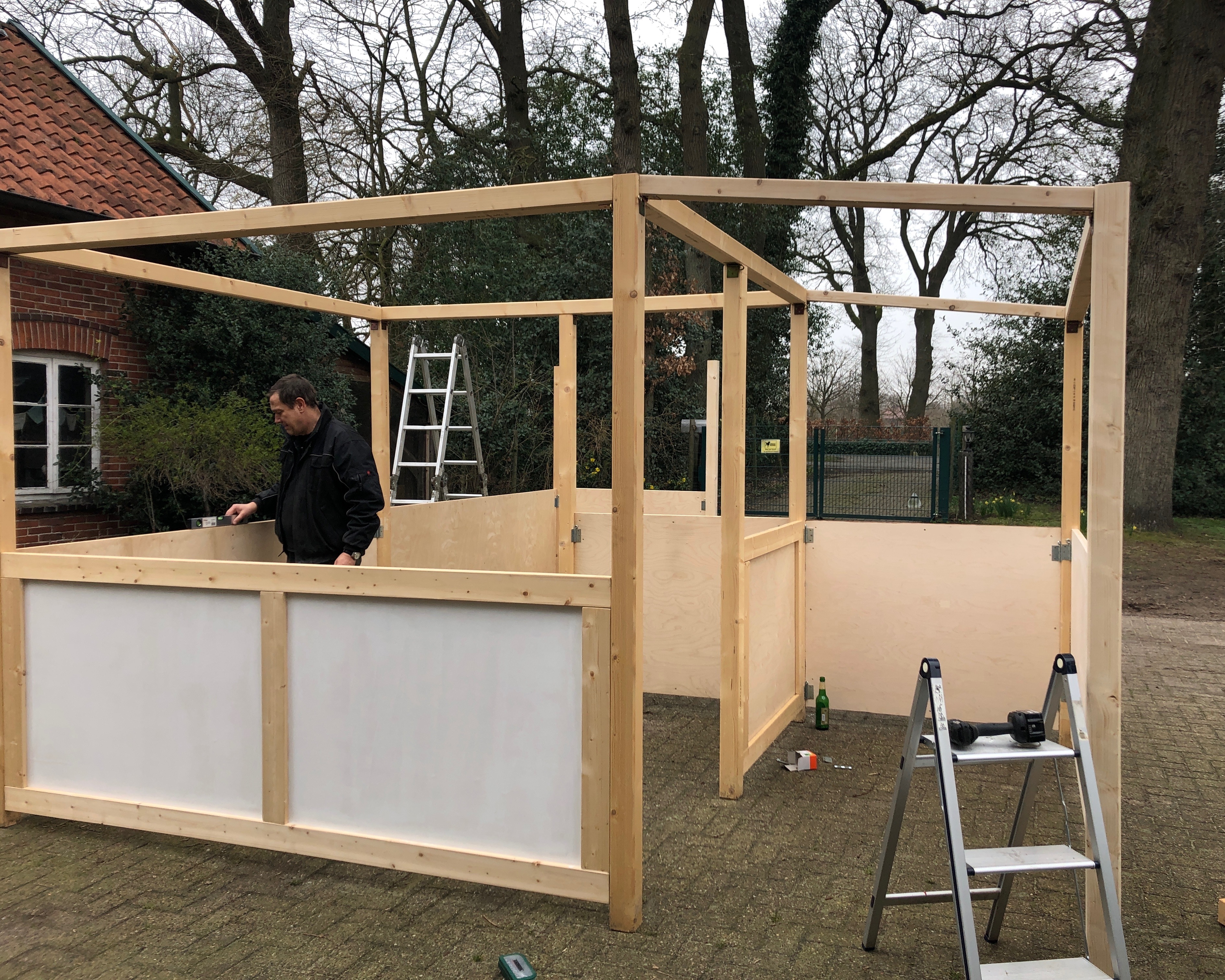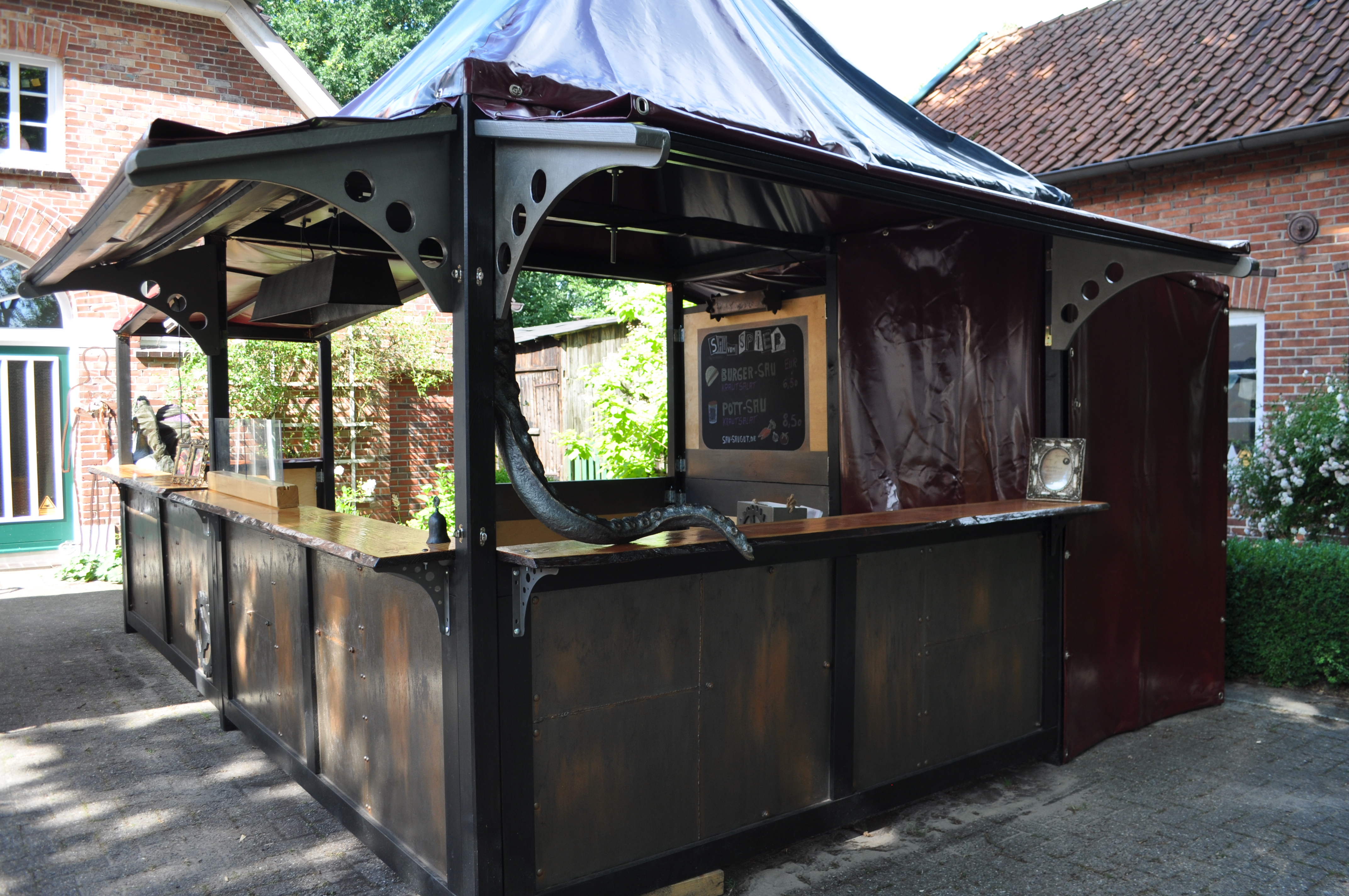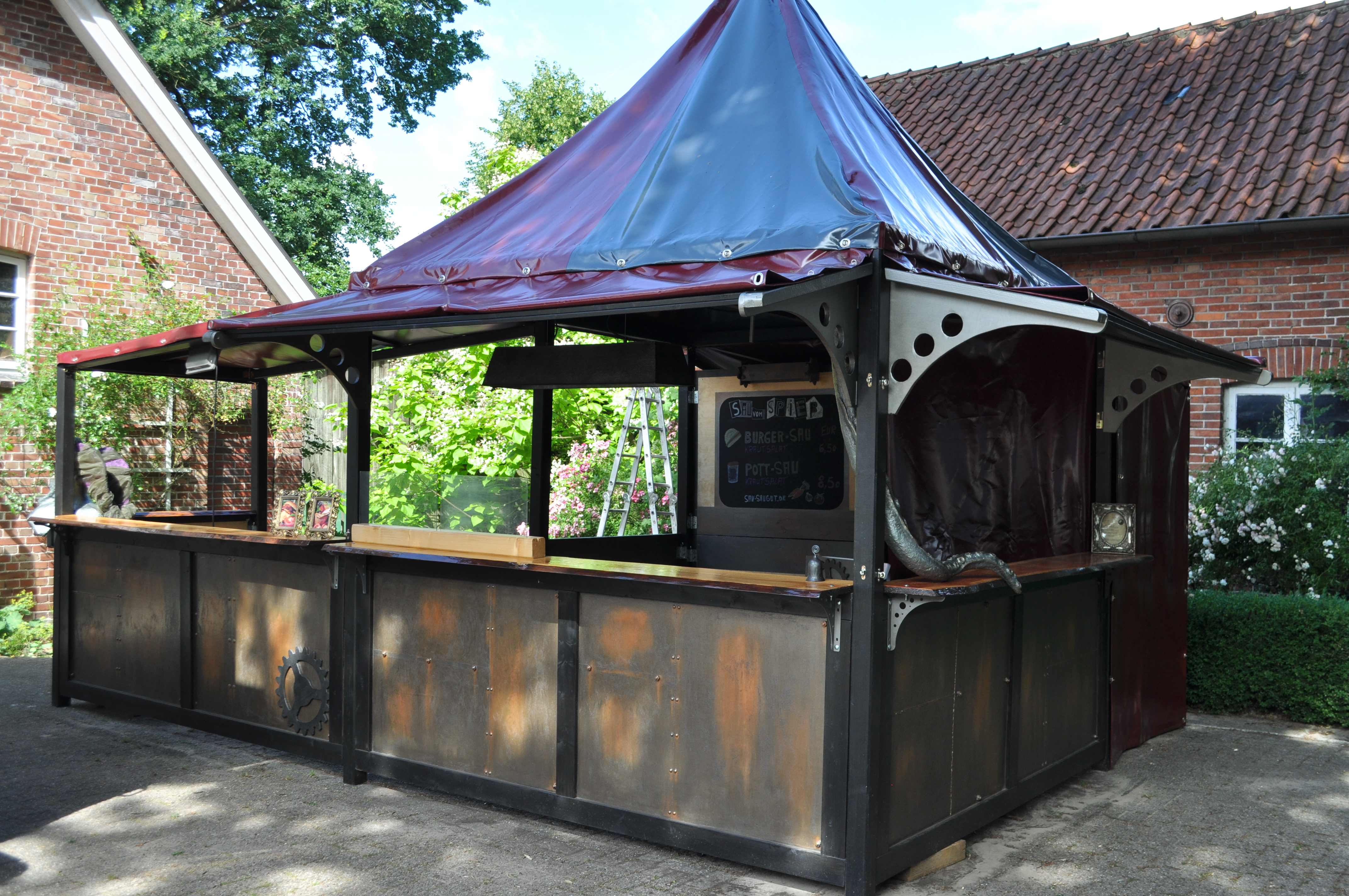 Der Stand wurde übrigens von uns selbst erbaut. Seit März bauen wir daran herum. Der Zuschnitt, das Holz für den Stand sowie die komplette Konstruktion hat mein Mann übernommen.
