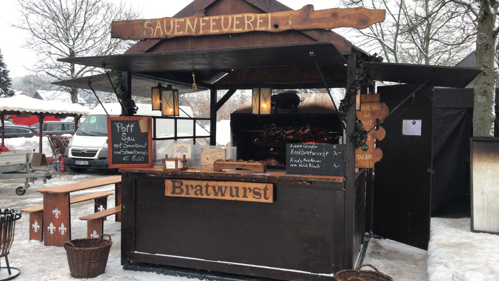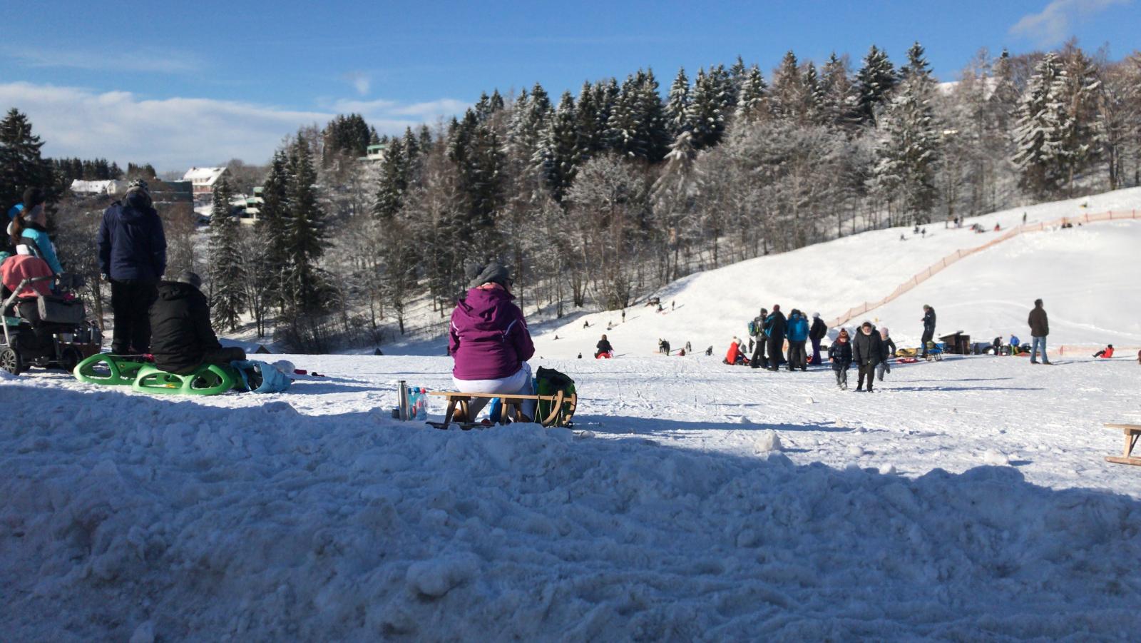 Auch am Kurhaus an der Rodelpiste, wo wir mit unserem Stand stehen, ist viel los.
